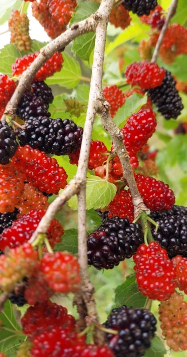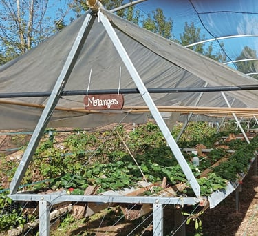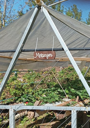 em cultivo protegido, sem o uso de agro-tóxicos, dentre os quais temos framboesas, amoras, mirtilos, morangos e ibiscus.
